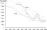 The total fertility rate, shown in Table Ab52–117 and in Figure Pa-C, indicates that in 1880 the rate for blacks was more than 70 percent higher than that for whites. The two rates declined and converged until about 1920. Over the next forty years there was some widening of the racial gap in fertility to about one birth per woman by the end of the baby boom in the early 1960s. Since about 1960, the gap has once again begun to close, with much of the decline occurring in the 1990s. Some of the decline has come from declines in birth rates among very young black women. For instance, birth rates for black women aged 15–17 declined from 82.3 per 1,000 in 1990 to 56.8 in 1998, and from 152.9 to 126.8 for black women aged 18–19 (see series Ab88–89). There has been some decline in age-specific rates at older ages as well.