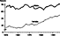 Work hours vary by worker demographic group as well. Among men and women who have jobs outside the home, men typically work longer hours than women, and the gender gap in weekly hours has changed little since the 1950s: according to the CPS statistics in Table Ba4597–4607, the workweek of the average male worker has exceeded that of the average female worker by six to seven hours throughout the period covered. Of course, the labor force participation rate of women increased substantially during this period. Furthermore, those women who reported working were working more weeks per year. This can be seen in Figure Ba-R, which plots the percentage of male and female workers who reported being year-round, full-time workers. Evidently, the feminization of the paid workforce since World War II has involved increases in the proportion of women working outside the home and in the regularity of women's paid work over the year, but not increases in working women's weekly hours at paid employment relative to men's.